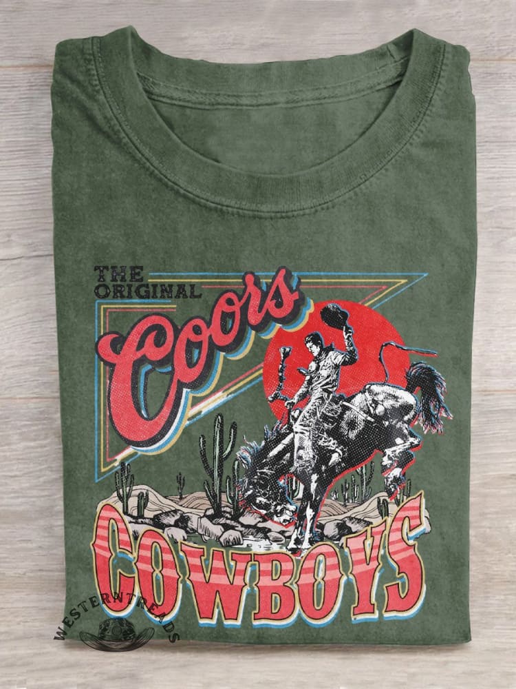 Vintage Coors Western Cowboy Art Print Casual T-shirt